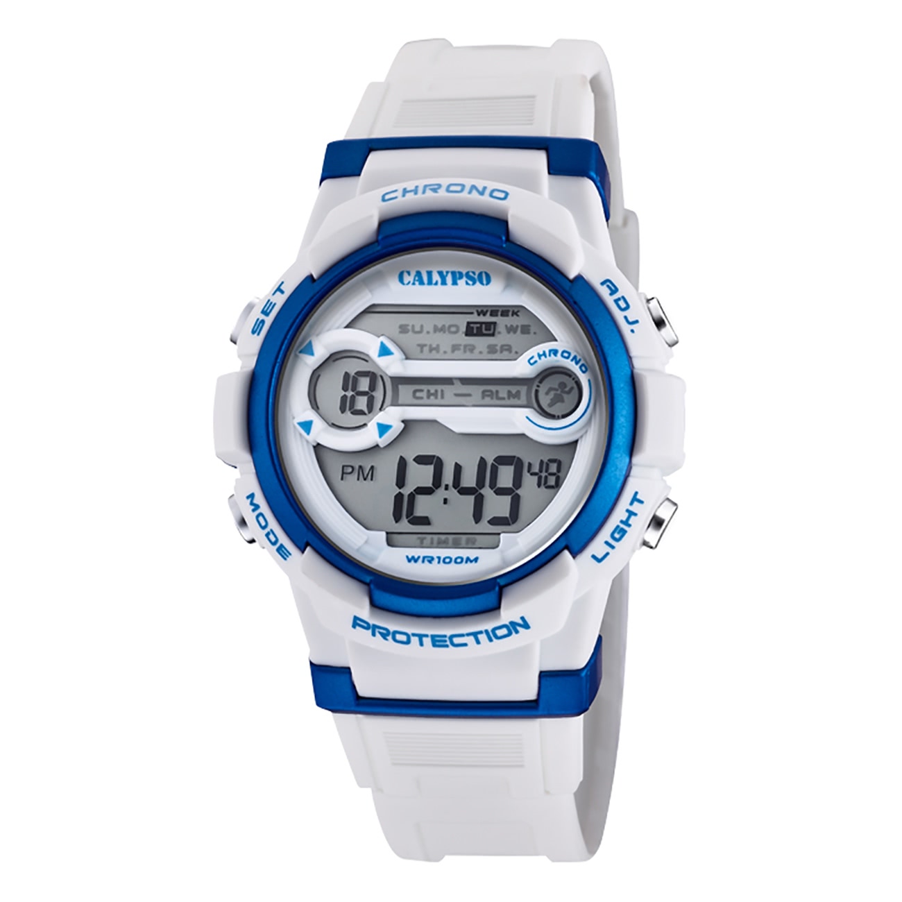 Calypso Jugend Uhr K5808/1 Digital Armbanduhr Kunststoff weiß blau UK5808/1