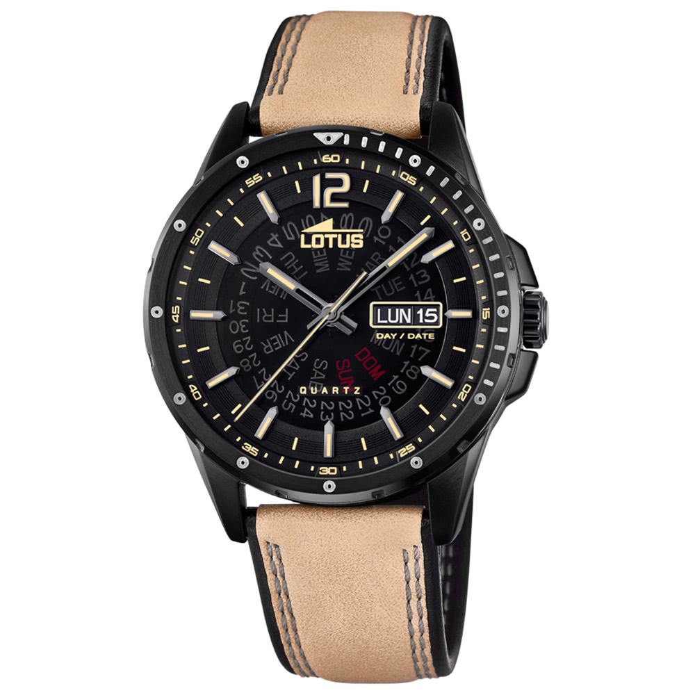 Lotus Herrenuhr 18525/4 Quarz-Uhr mit Leder-Band creme schwarz UL18525/4