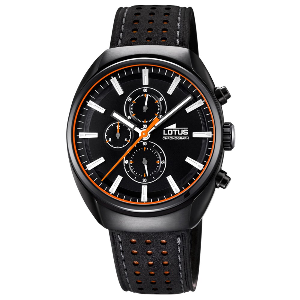 Lotus Herrenuhr 18567/4 Quarz-Uhr mit Leder-Band schwarz orange UL18567/4