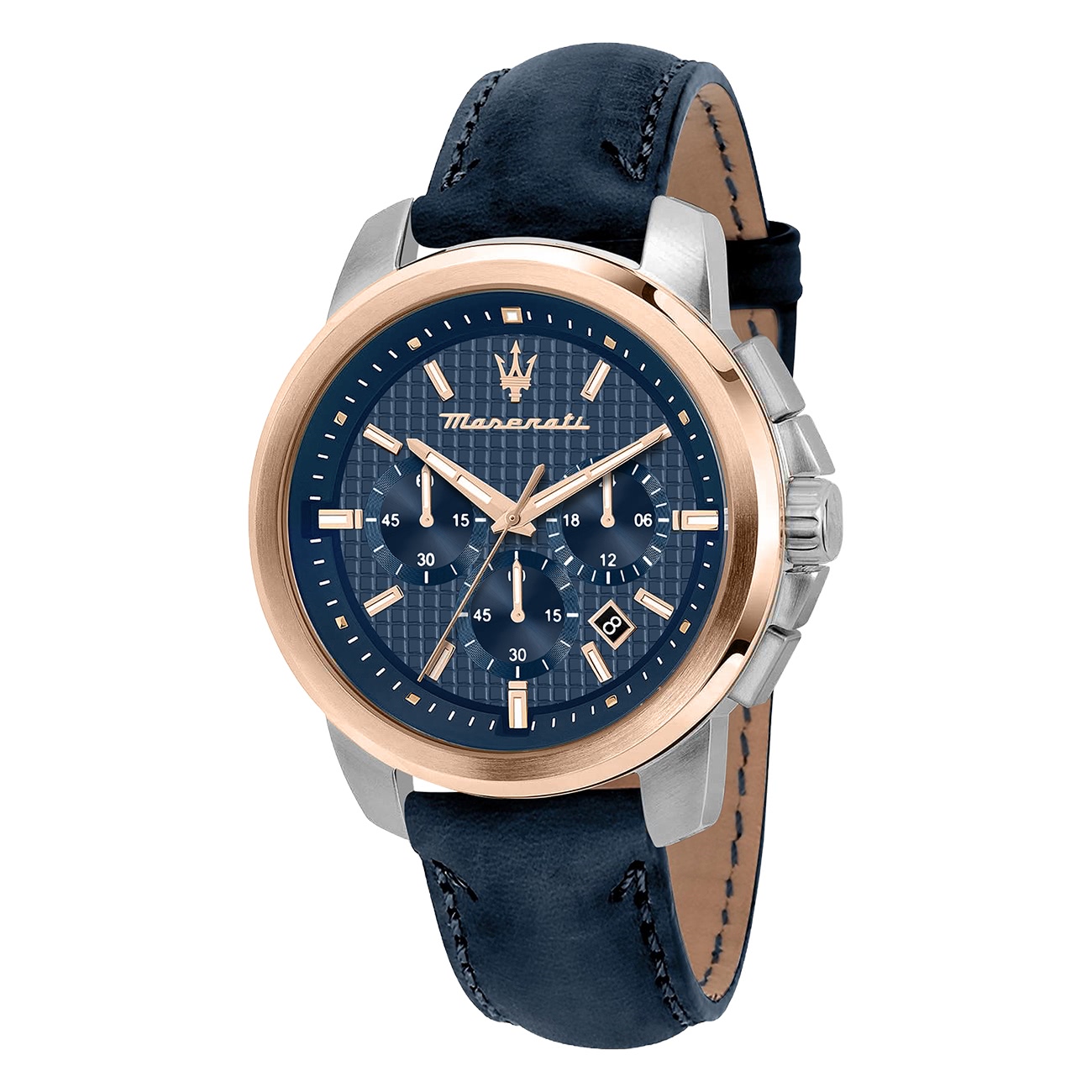 Maserati SUCCESSO Herren Uhr Chronograph Armband Leder blau UMAR8871621015