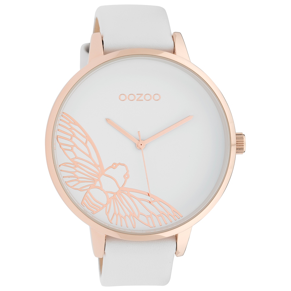 Oozoo Timepieces Damenuhr Quarzuhr Analog mit Lederarmband weiß UOC10075