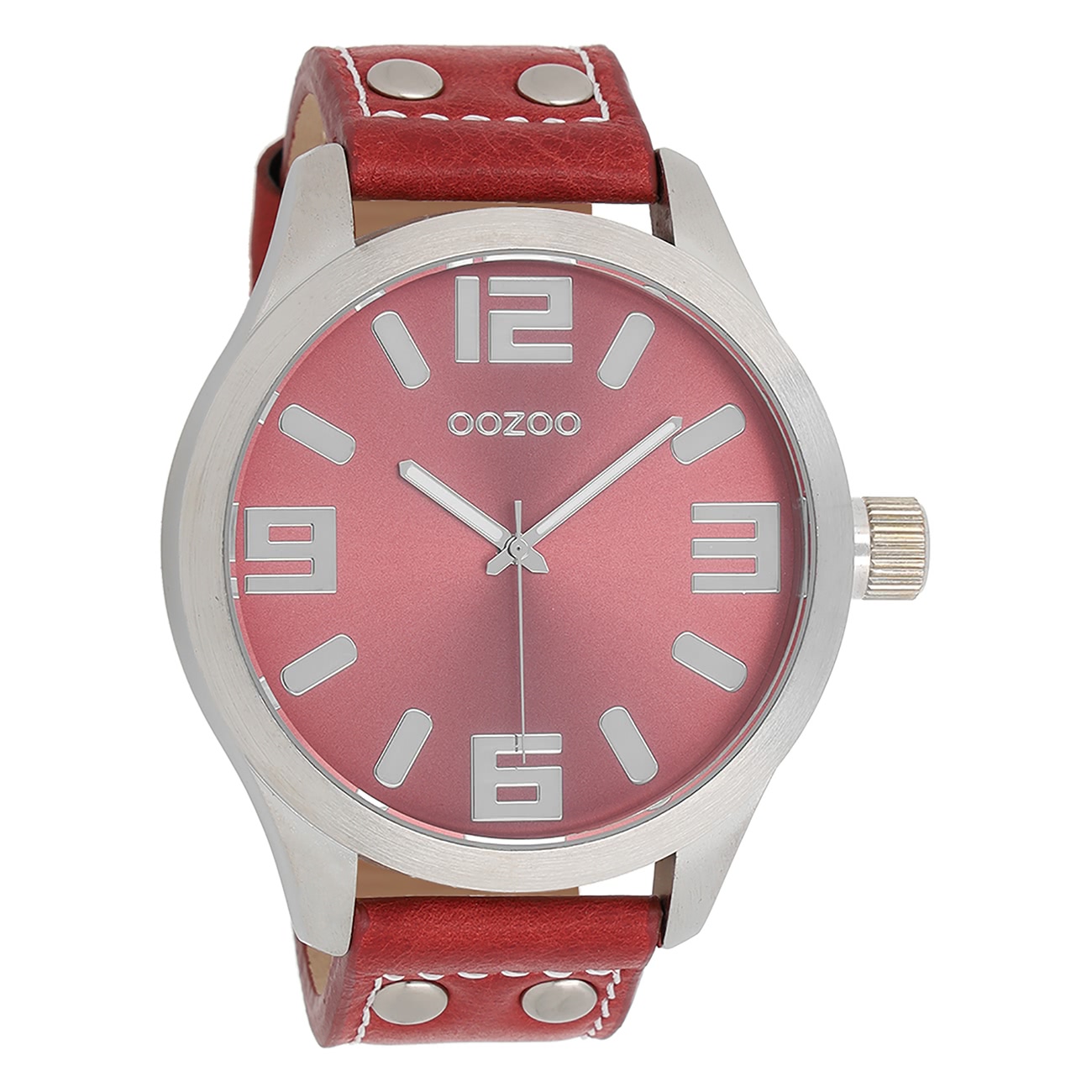 Oozoo Timepieces Herrenuhr Quarzuhr Analog mit Lederarmband rot UOC1009A