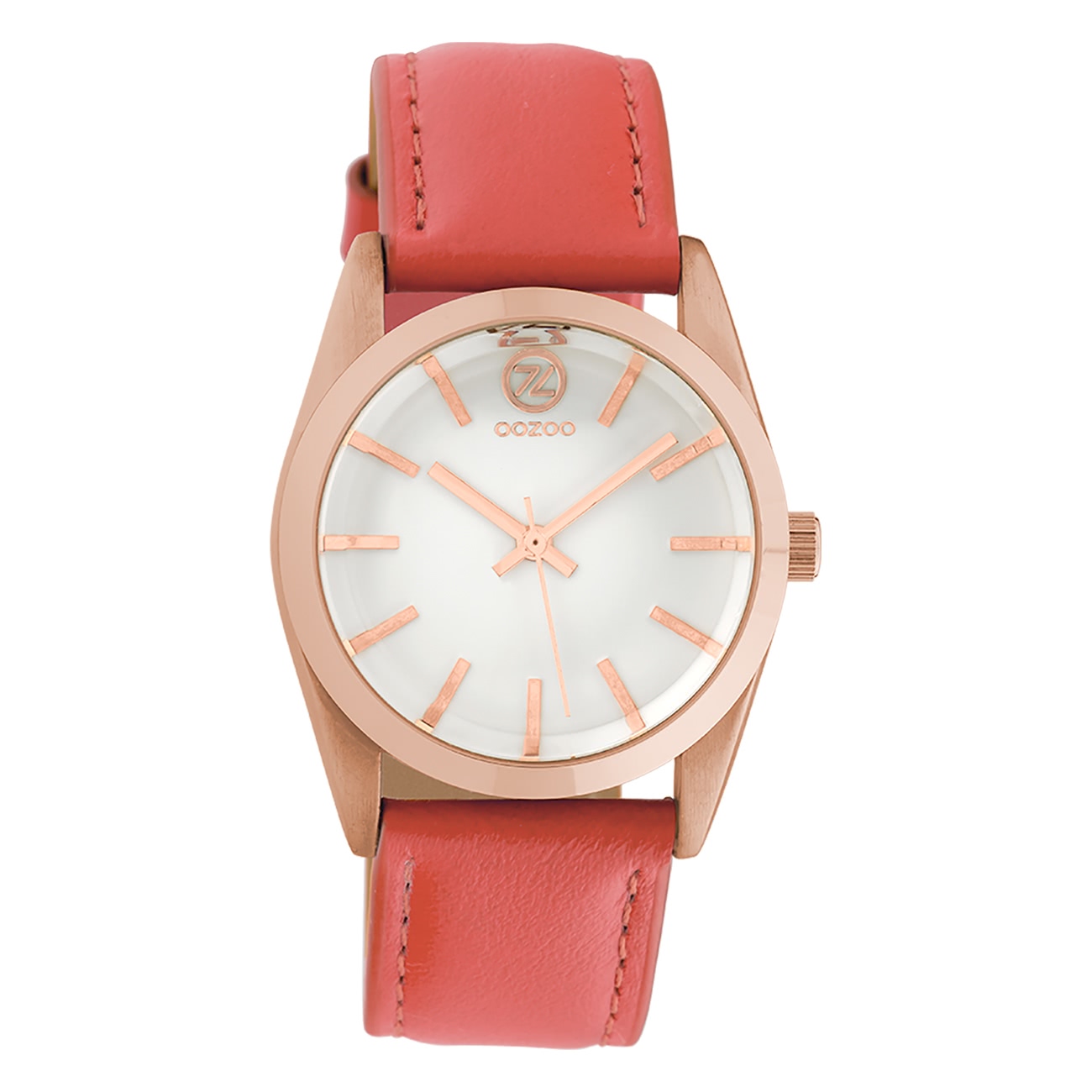 Oozoo Timepieces Damenuhr Quarzuhr Analog mit Lederarmband rot UOC10190