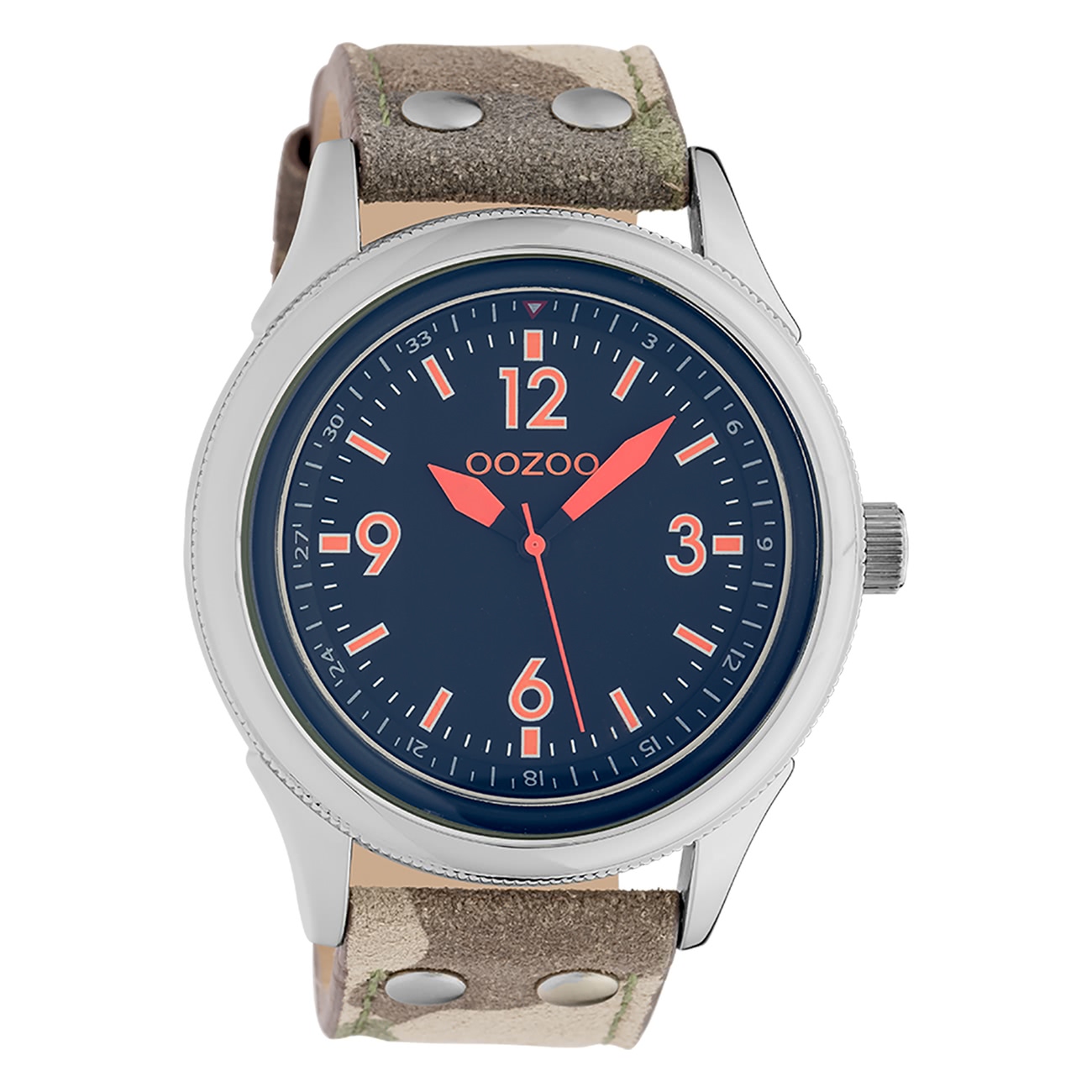 Oozoo Timepieces Herren Damenuhr Analog mit Lederarmband camouflage braun UOC10354