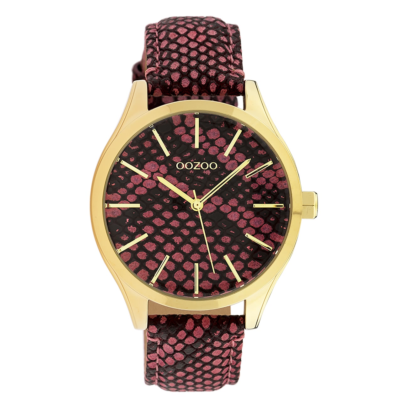 Oozoo Timepieces Damenuhr Quarzuhr Analog mit Lederarmband pink schwarz UOC10433
