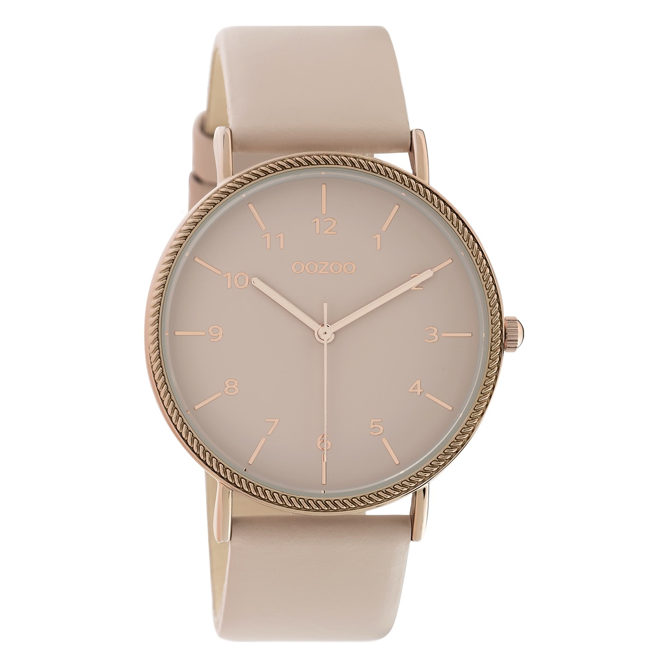 Oozoo Timepieces Damenuhr Quarzuhr Analog mit Lederarmband beige rosa UOC10820
