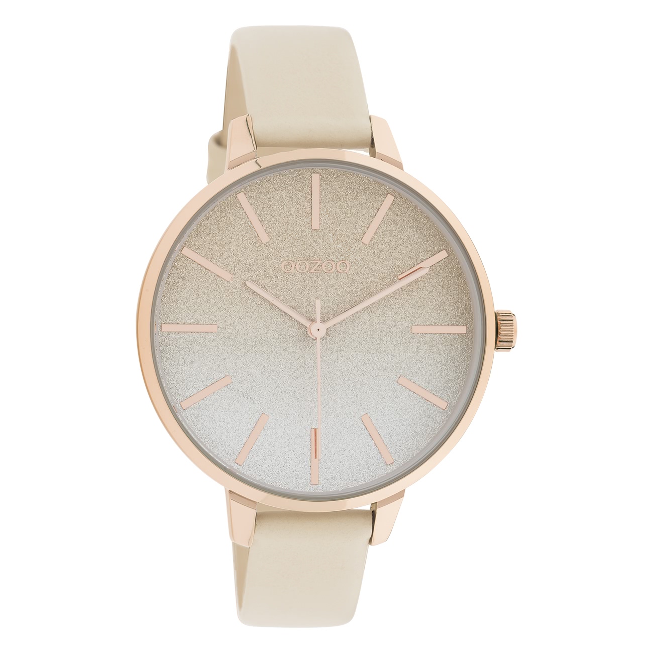 Oozoo Timepieces Damenuhr Quarzuhr Analog mit Lederarmband beige weiß UOC11030