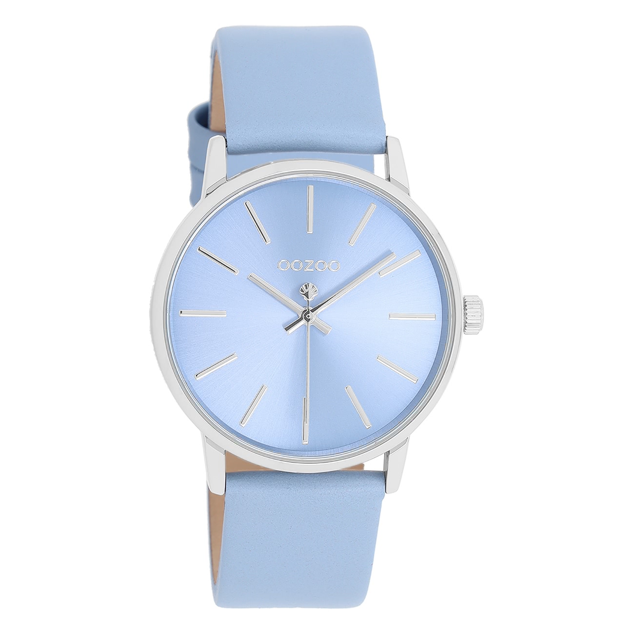 Oozoo Timepieces Damenuhr Quarzuhr Analog mit Lederarmband hellblau UOC11063