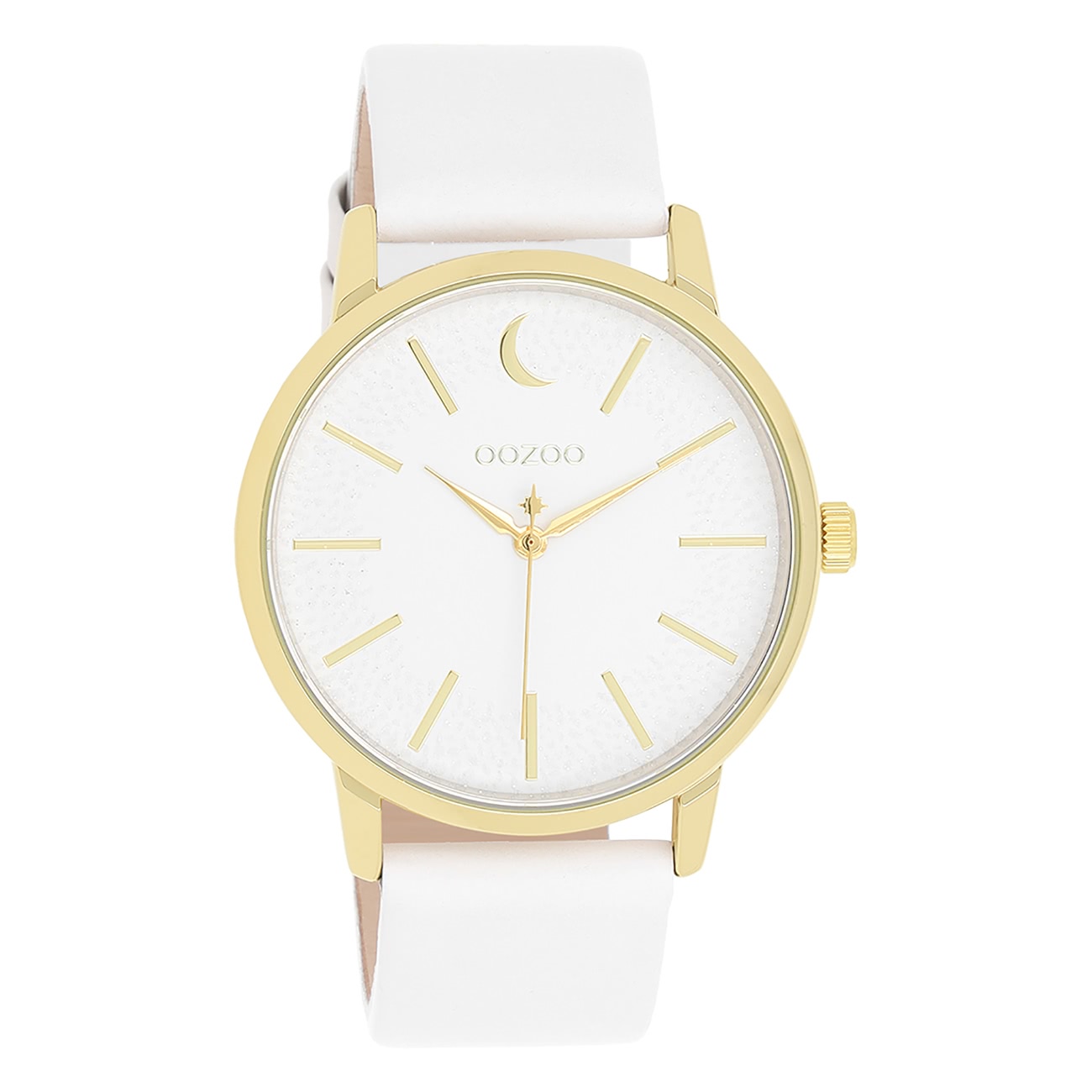 Oozoo Timepieces Damenuhr Quarzuhr Analog mit Lederarmband weiß UOC11156