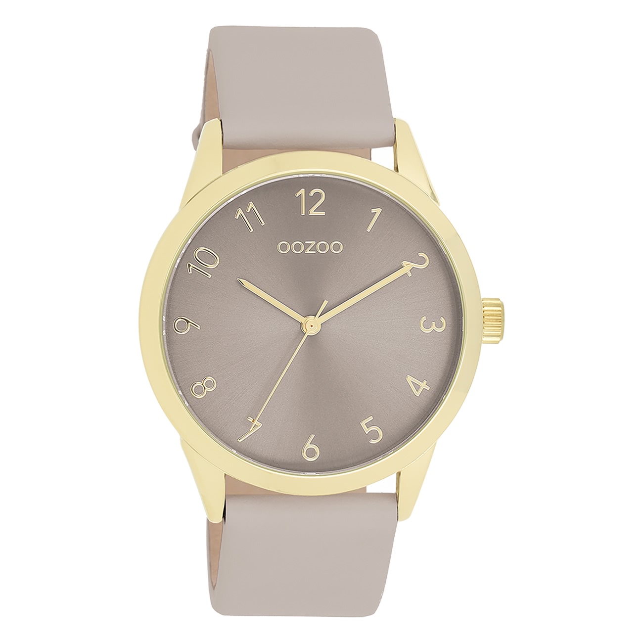 Oozoo Timepieces Damenuhr Quarzuhr Analog mit Lederarmband hellgrau taupe UOC11328
