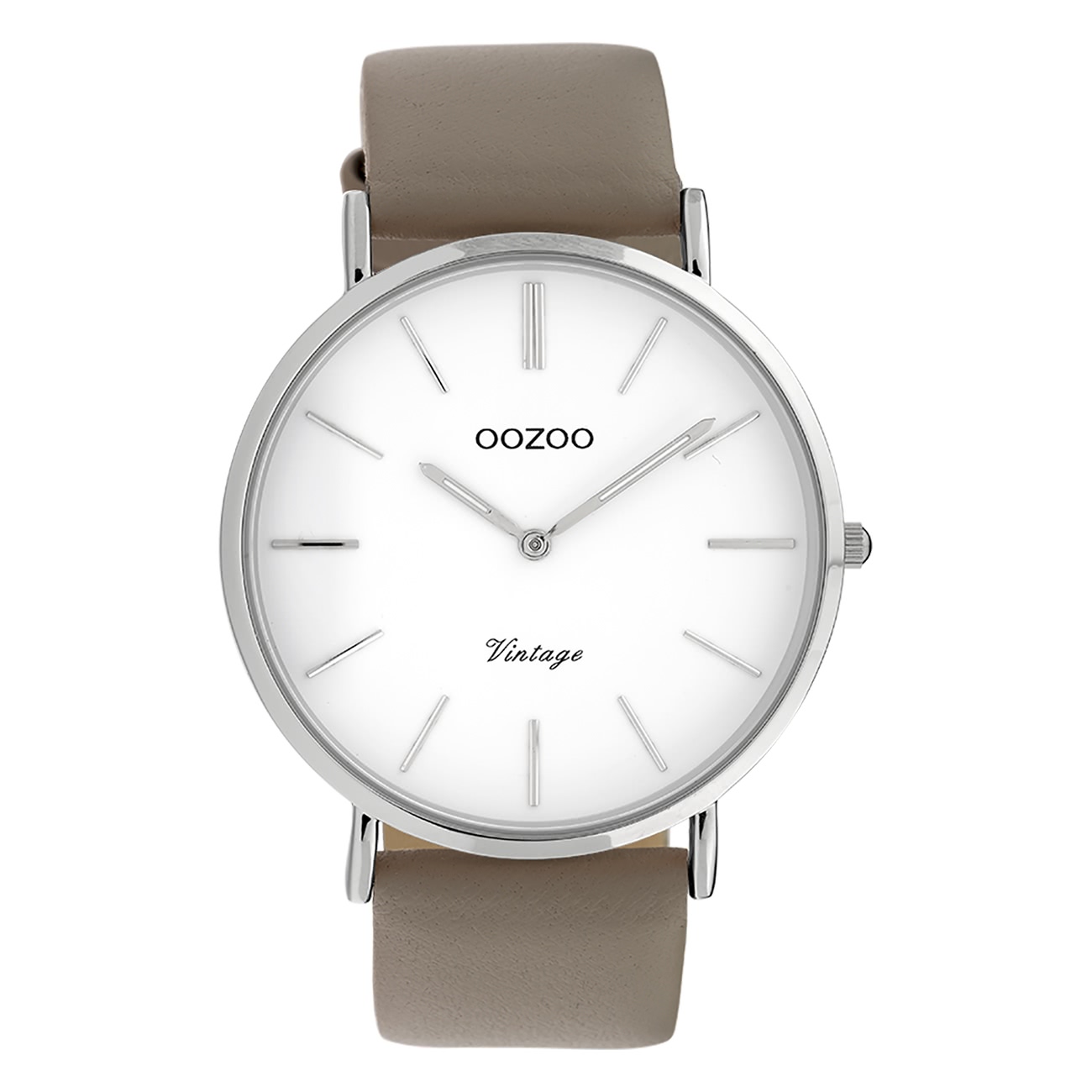 Oozoo Vintage Series Damenuhr Quarzuhr Analog mit Lederarmband grau taupe UOC20076