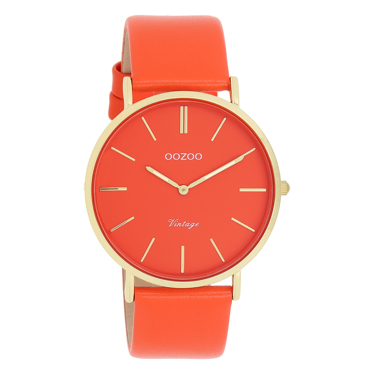 Oozoo Vintage Series Damenuhr Quarzuhr mit Lederarmband rot orange UOC20321