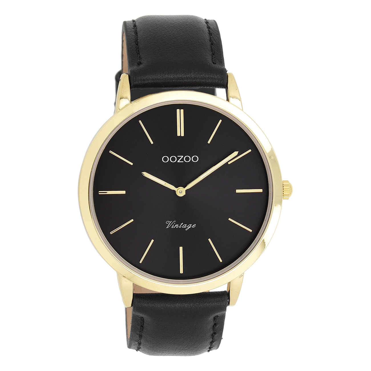 Oozoo Vintage Series Damen Herrenuhr Quarzuhr mit Lederarmband schwarz UOC20389