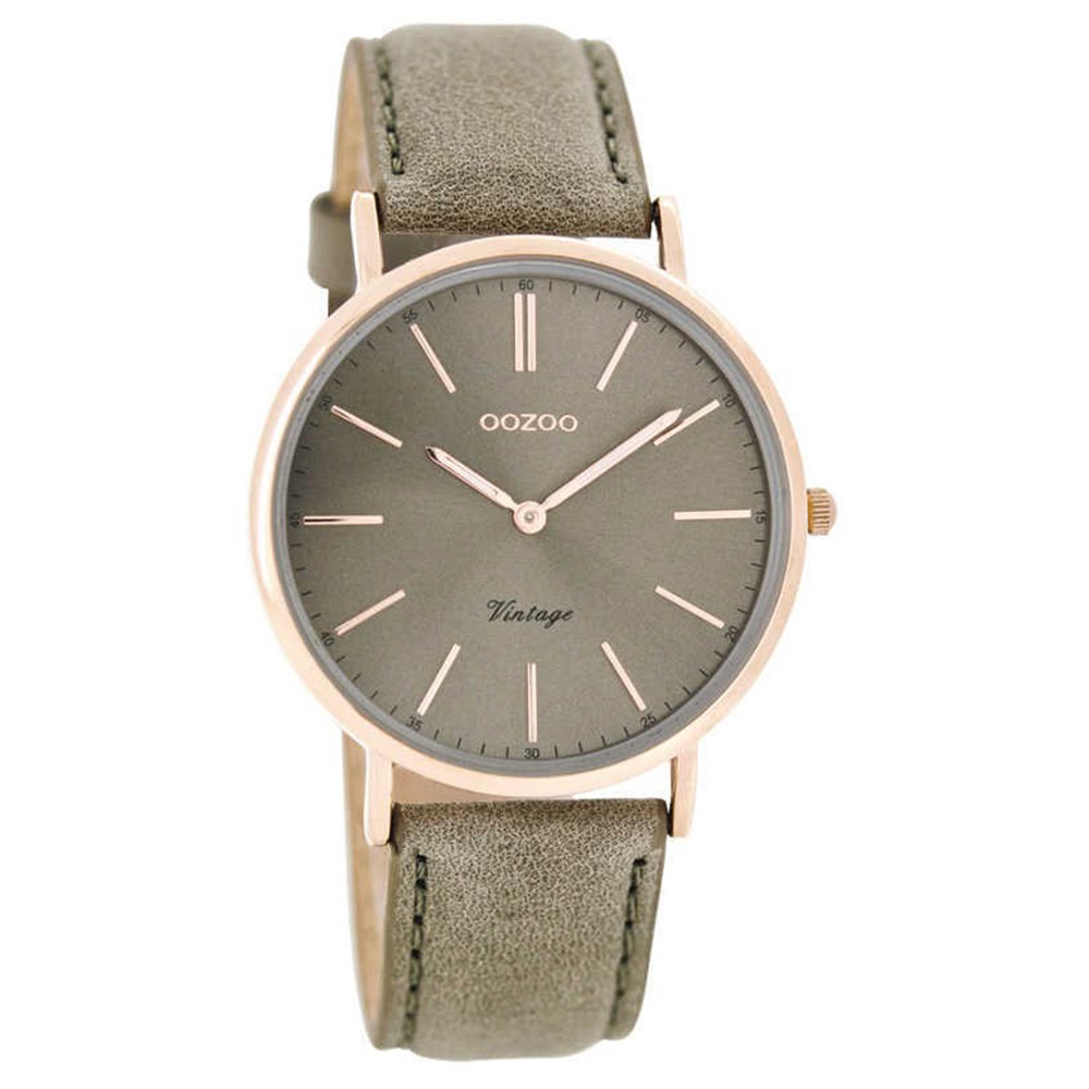 Oozoo Damen Uhr 36mm rosegold Quarz Analog Lederarmband grau braun UOC7374