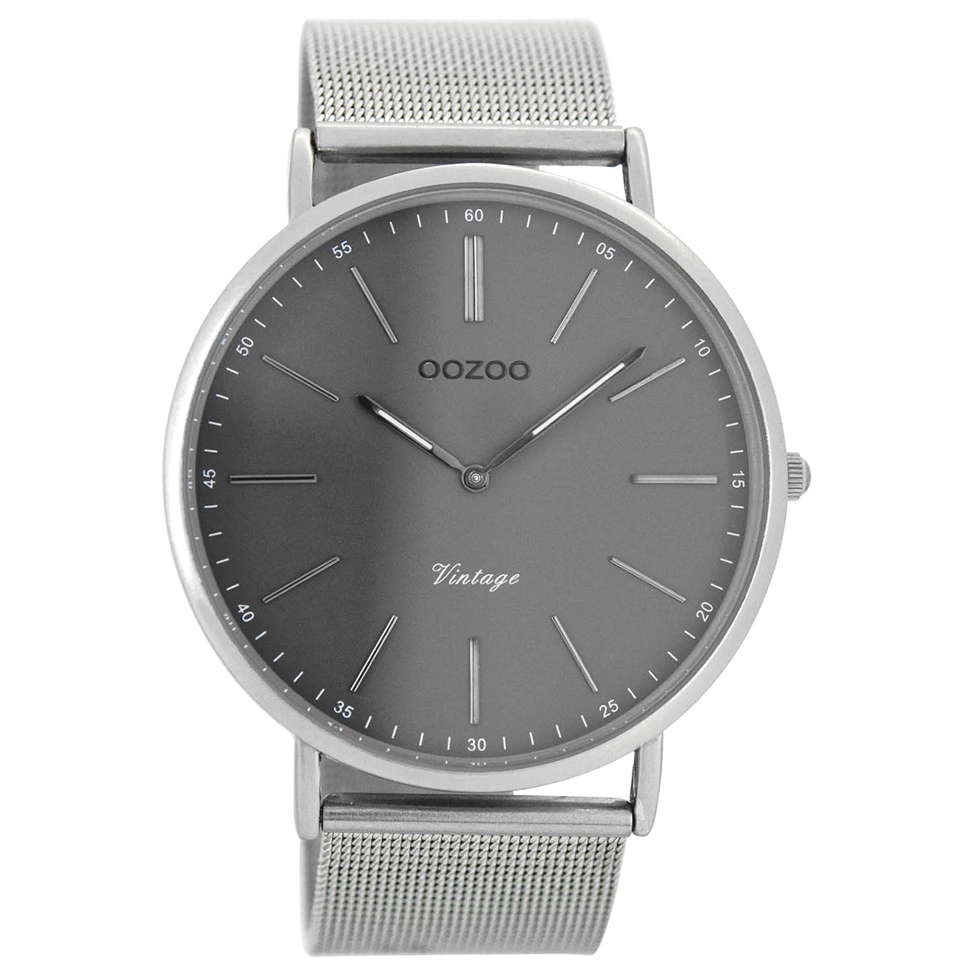 Oozoo Herren Uhr 44mm silber grau Quarz Analog Metallarmband silber UOC7382