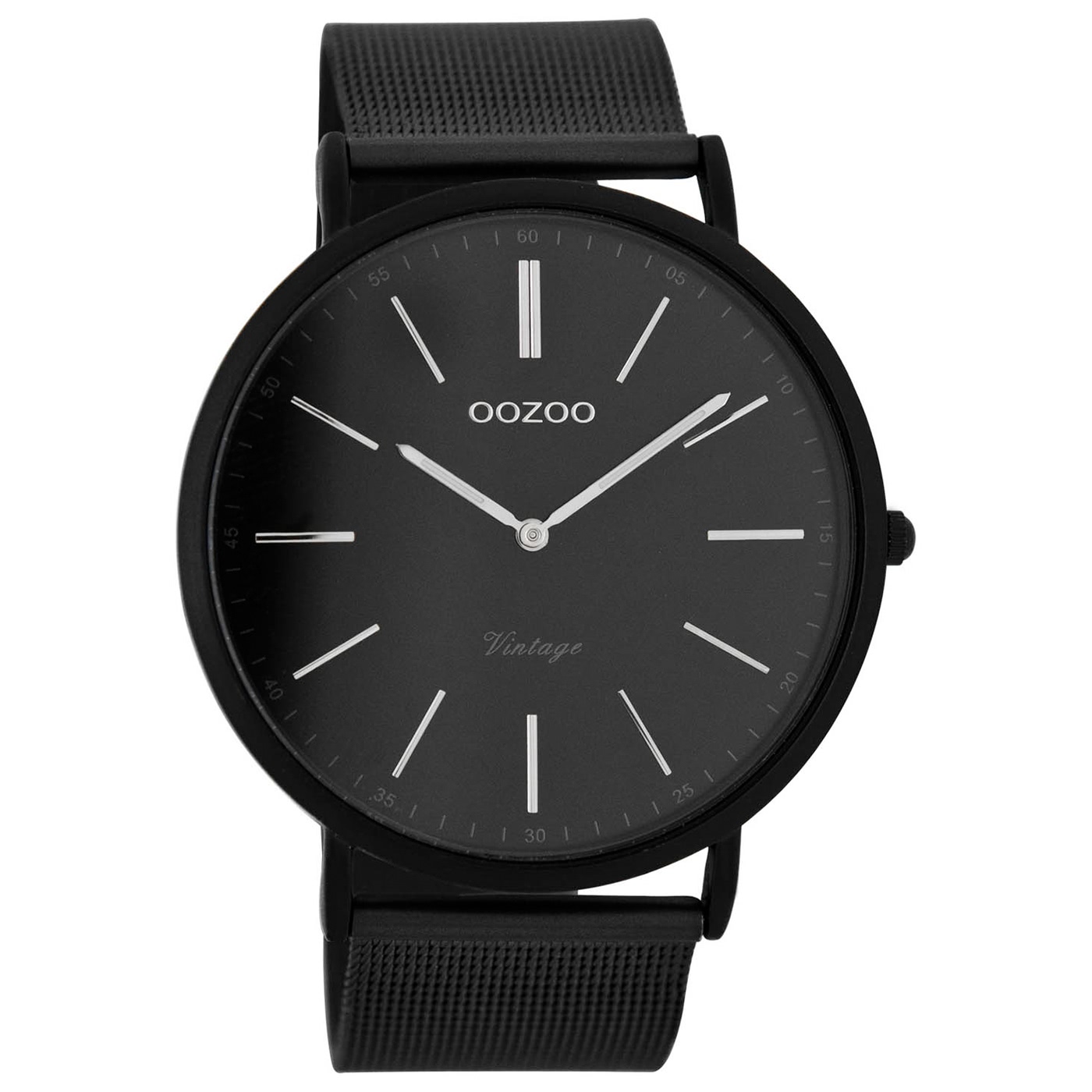Oozoo Damen Herren Uhr 44mm schwarz Quarz Analog Metallarmband schwarz UOC7383