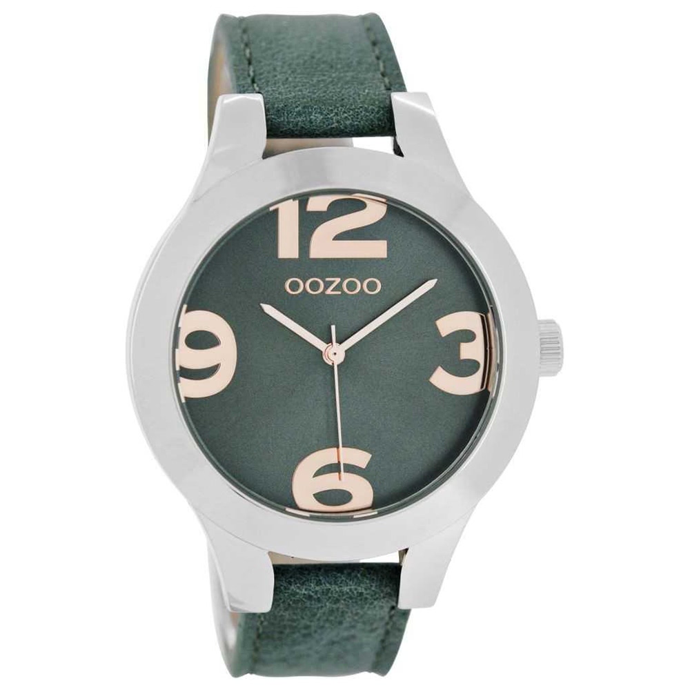Oozoo Damen Fashion Uhr 42mm silber Quarz Analog Lederarmband grün UOC7593