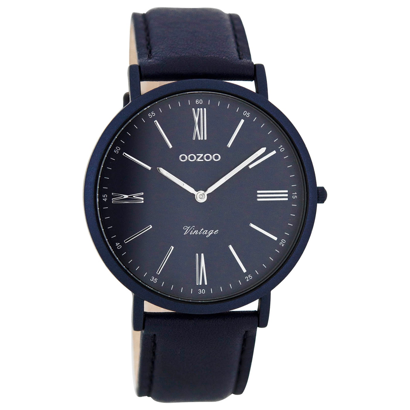 Oozoo Damen Herren Uhr 40mmlblau Quarz Analog Lederarmband dunkelblau UOC7712