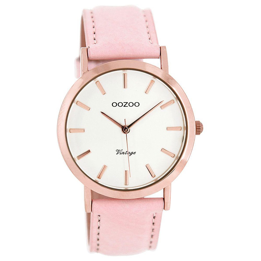 Oozoo Damen Uhr Fashion 38mm rosegold Quarz Analog Lederarmband rosa UOC8103