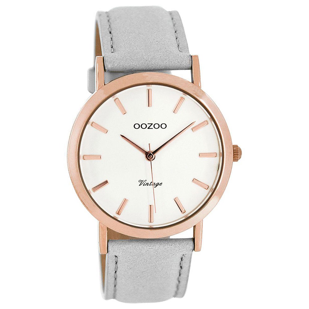 Oozoo Damen Uhr 38mm rosegold Quarz Analog Lederarmband steingrau UOC8105