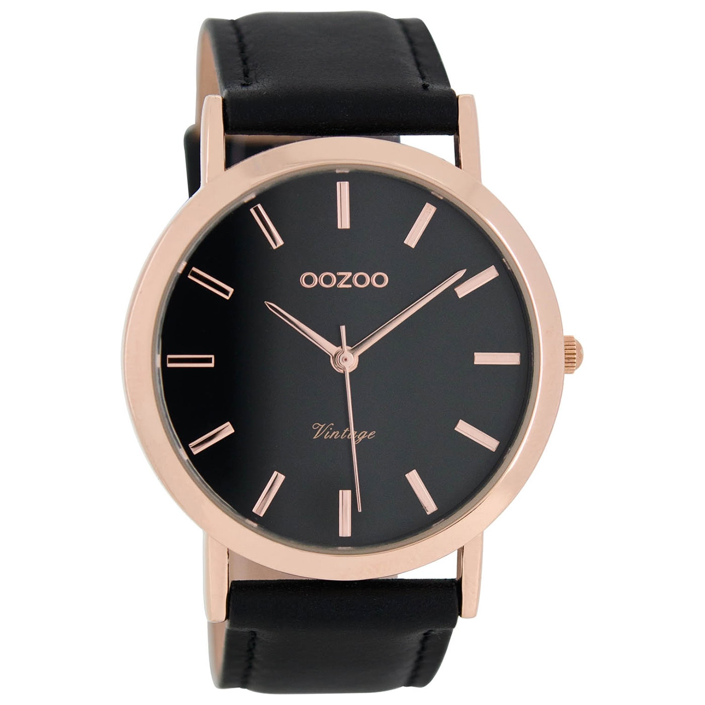 Oozoo Herren Uhr 45mm rosegold Quarz Analog Lederarmband schwarz UOC8119