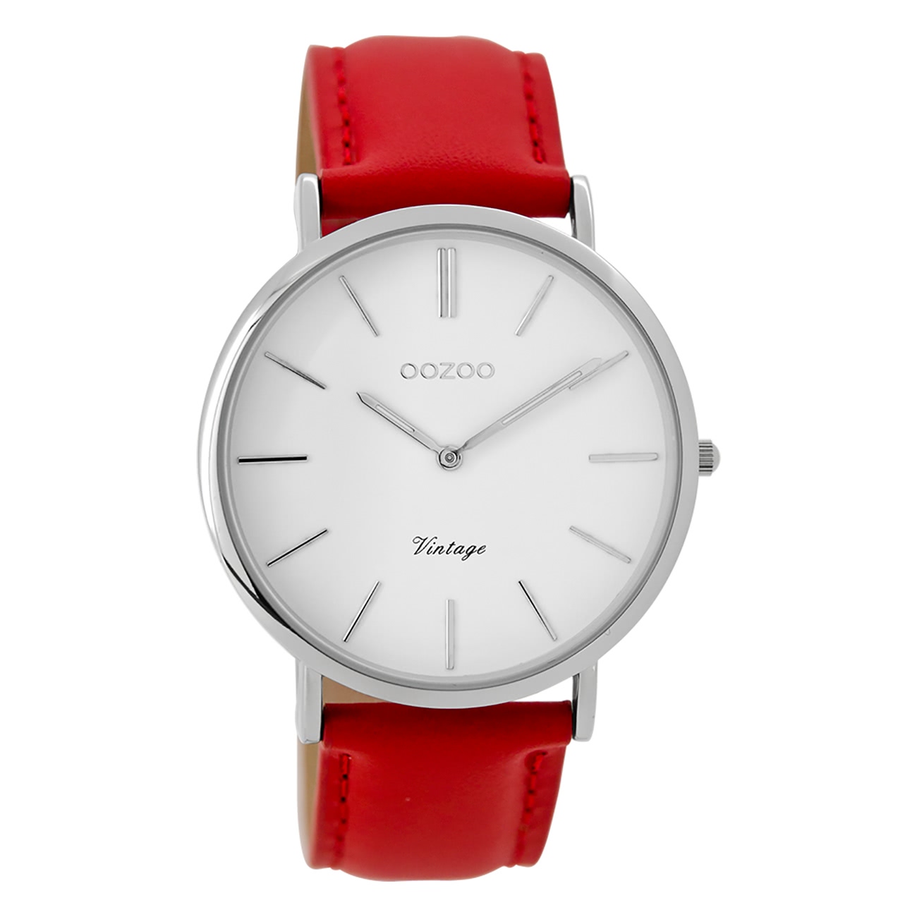 Oozoo Vintage Series Damenuhr Quarzuhr Analog mit Lederarmband rot UOC9307