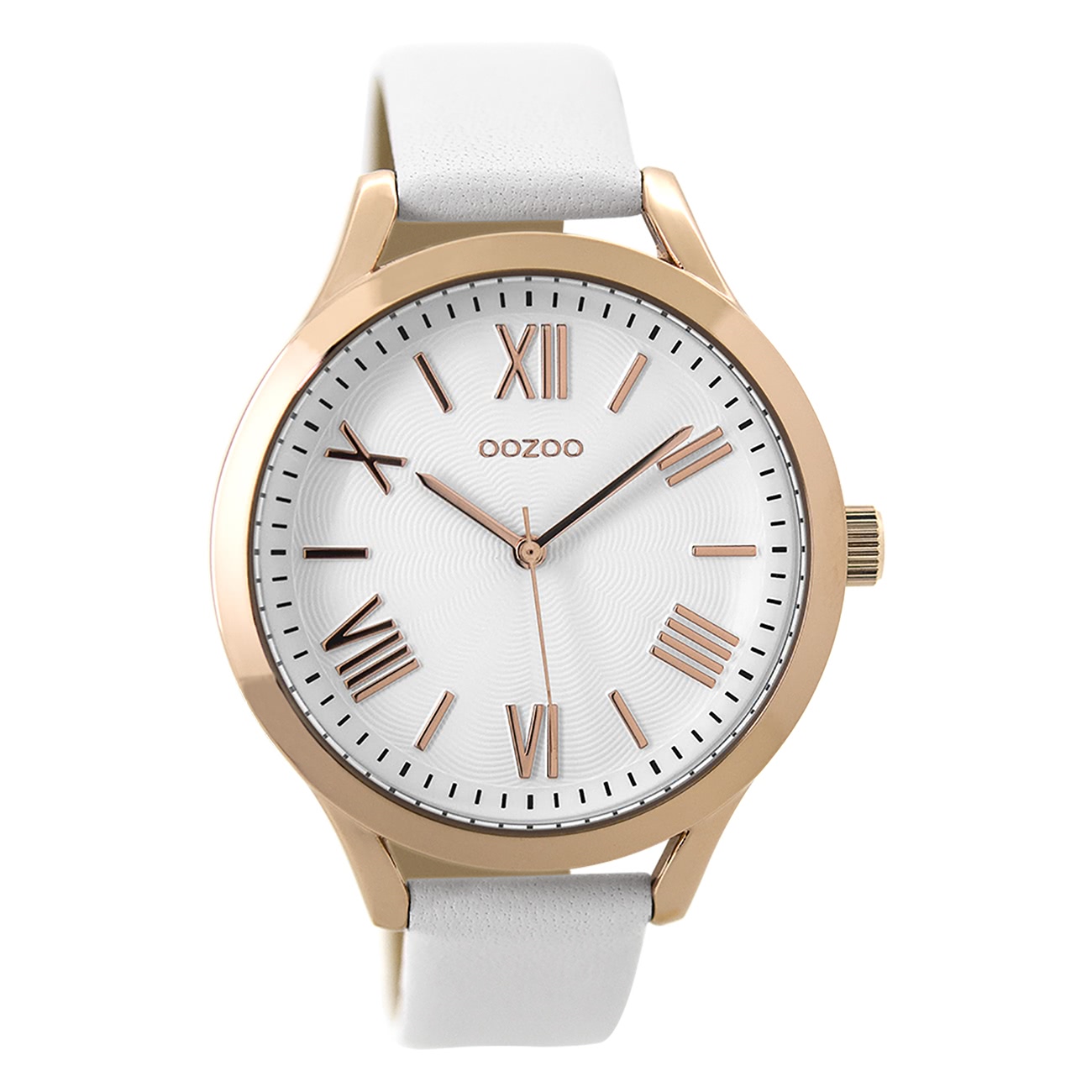 Oozoo Timepieces Damenuhr matt Analog mit Lederarmband weiß UOC9476A