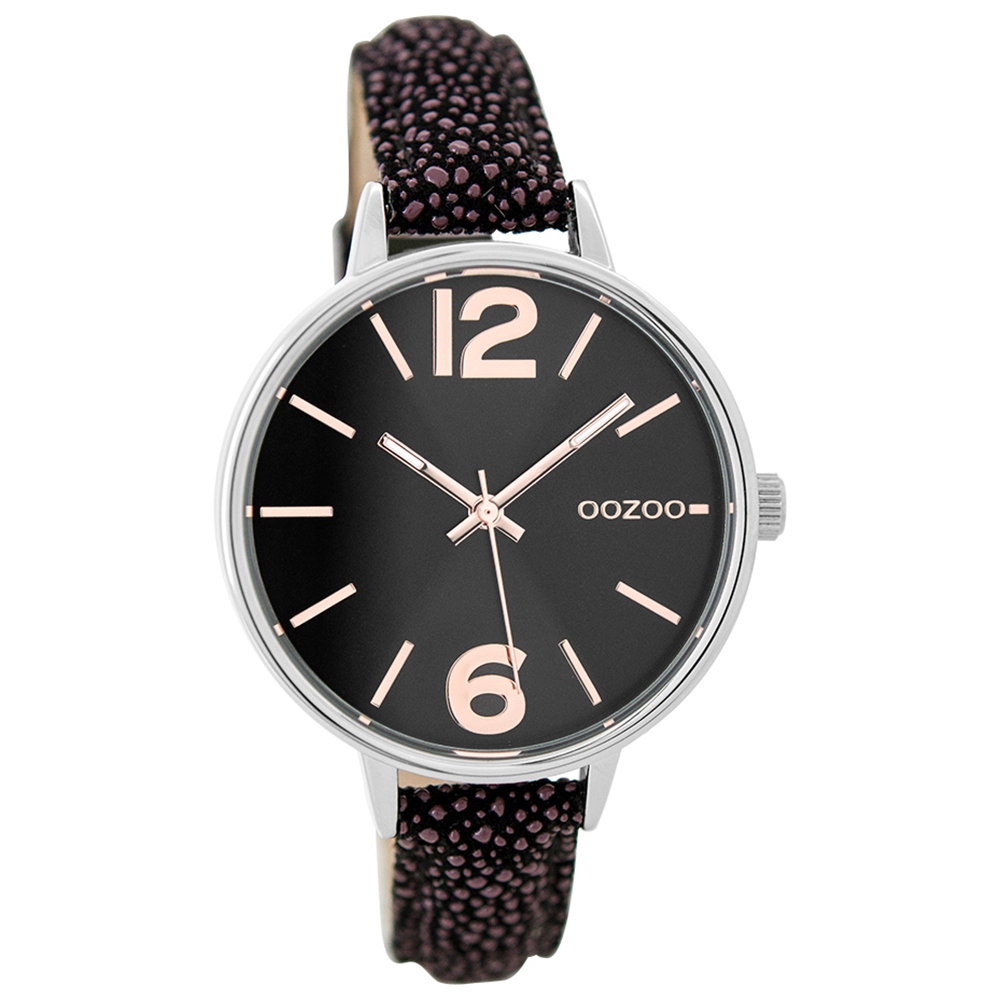 Oozoo Timepieces Damenuhr Quarzuhr Analog mit Lederarmband lila schwarz UOC9484