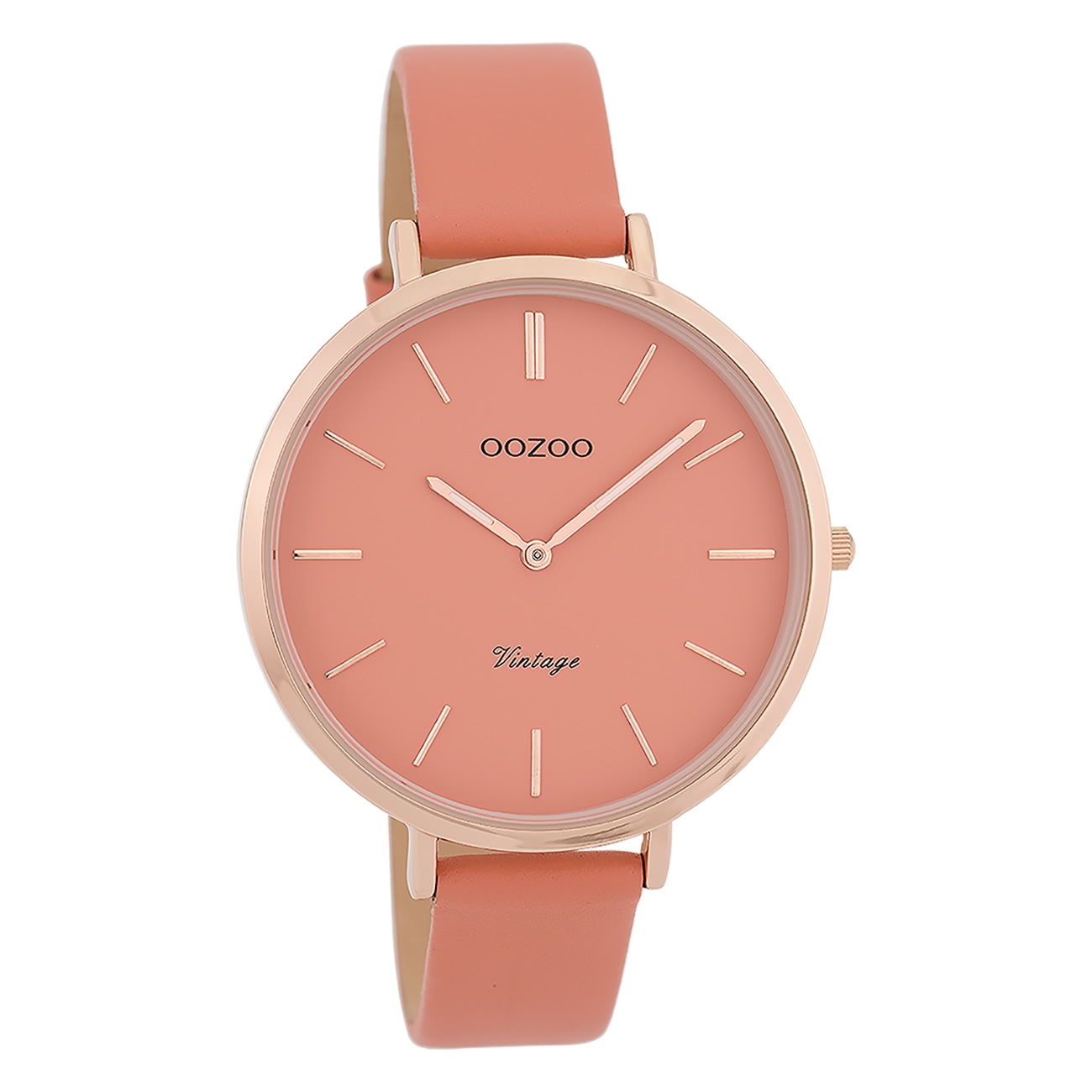 Oozoo Vintage Series Damenuhr matt Quarzuhr Analog mit Lederarmband rosa UOC9806A