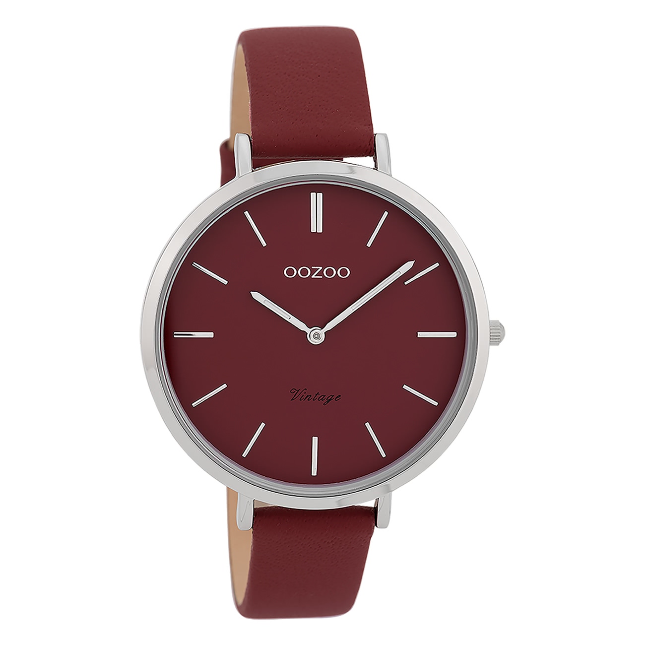 Oozoo Vintage Series Damenuhr matt Quarzuhr Analog mit Lederarmband rot UOC9807A