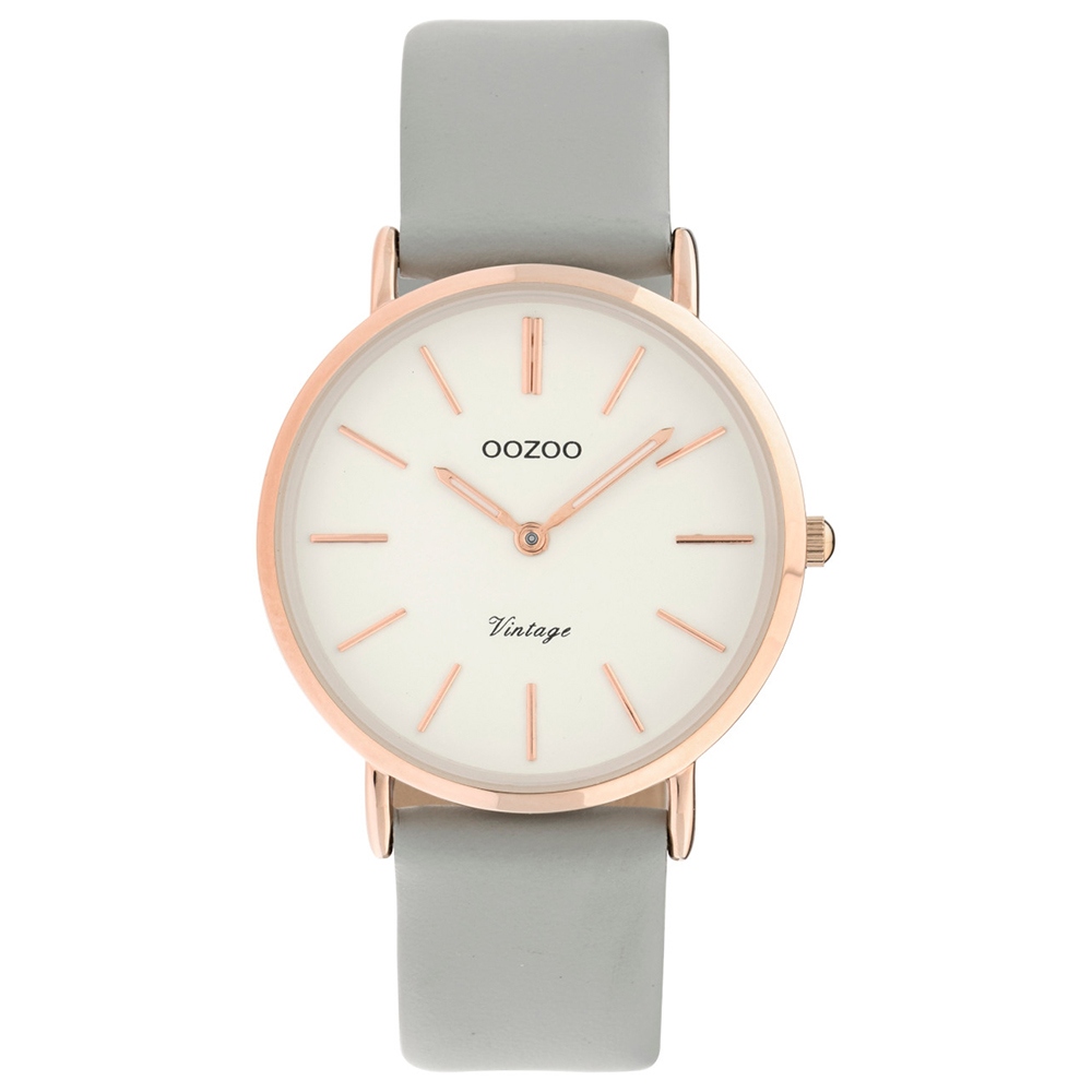 Oozoo Vintage Series Damenuhr C9975 Quarzuhr mit Lederarmband grau UOC9975
