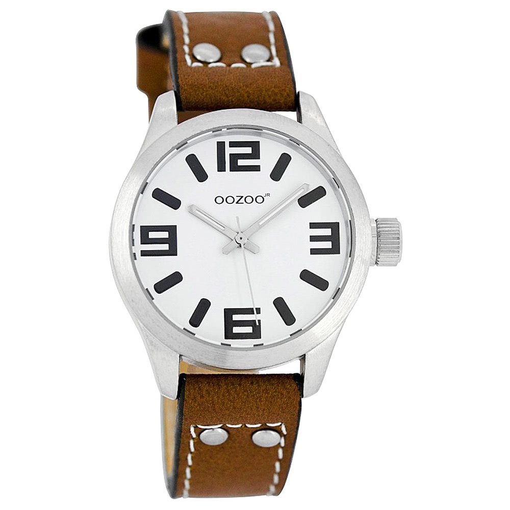 Oozoo Kinder Jugend Uhr 34mm silber Quarz Analog Lederarmband braun UOJR156