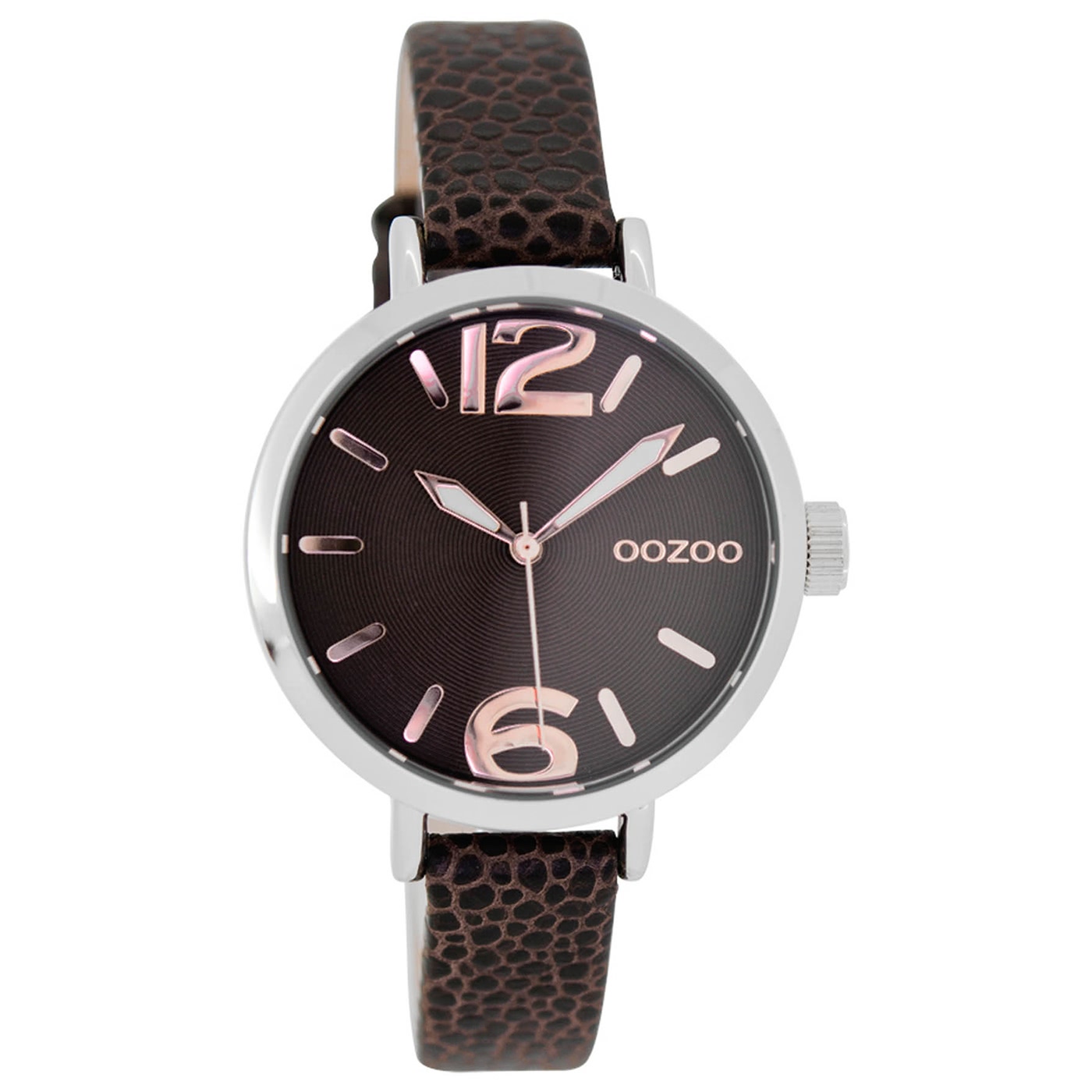 Oozoo Kinder Jugend Uhr 35mm silber Quarz Analog Lederarmband braun UOJR273