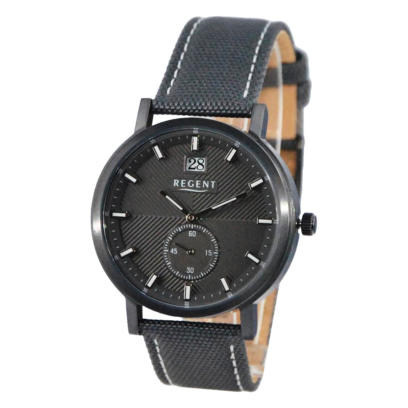 Regent Lederarmband Herren Uhr Armbanduhr Analog Leder schwarz weiss UR1111575