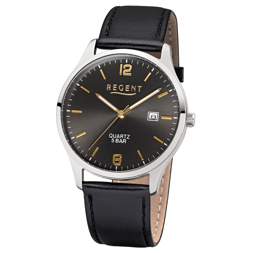 Regent Herrenuhr F-1242 Quarz-Uhr mit Leder-Armband schwarz UR1113407