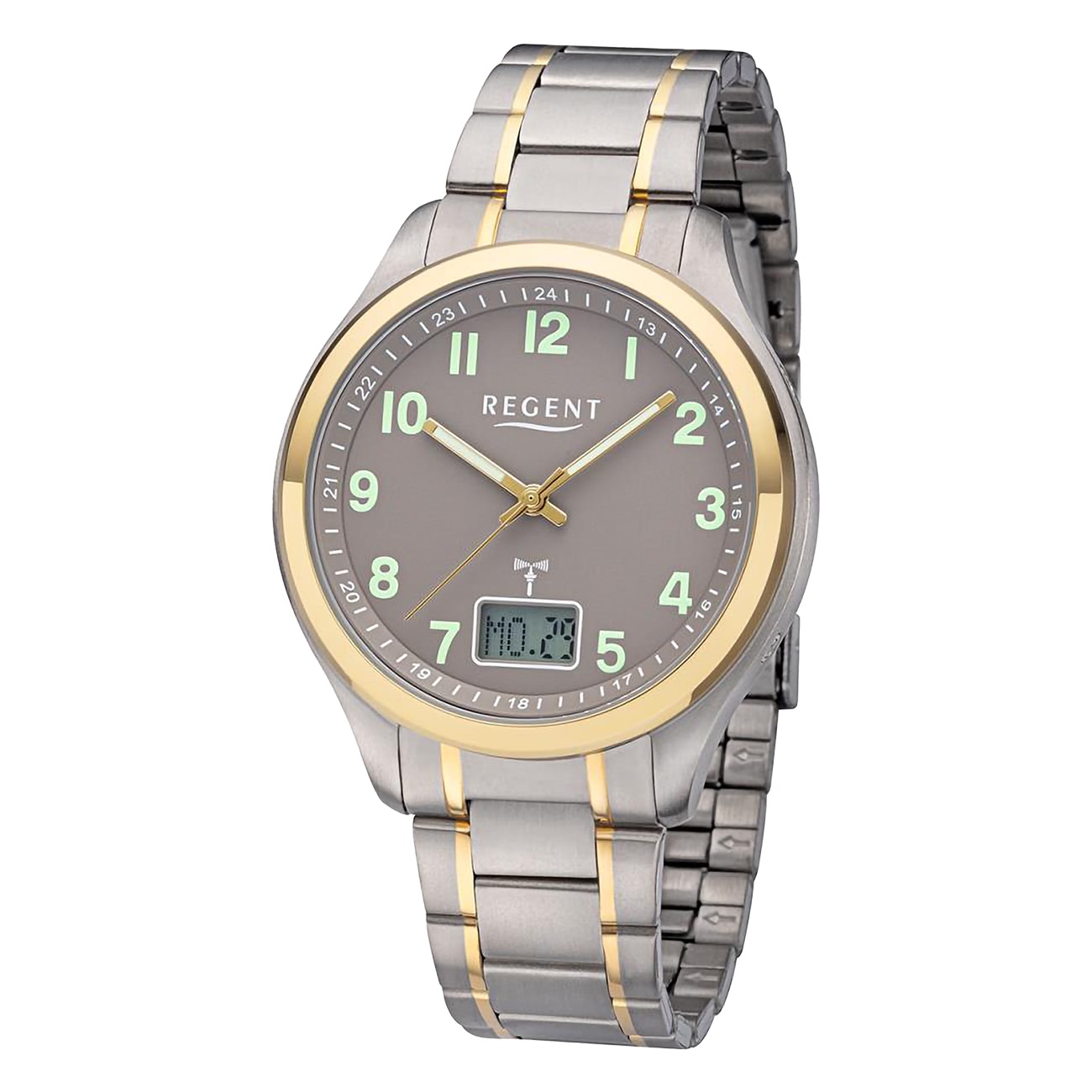 Regent Titan-Uhren Herren Uhr Armbanduhr Analog-Digital Titan silber gold UR1501569