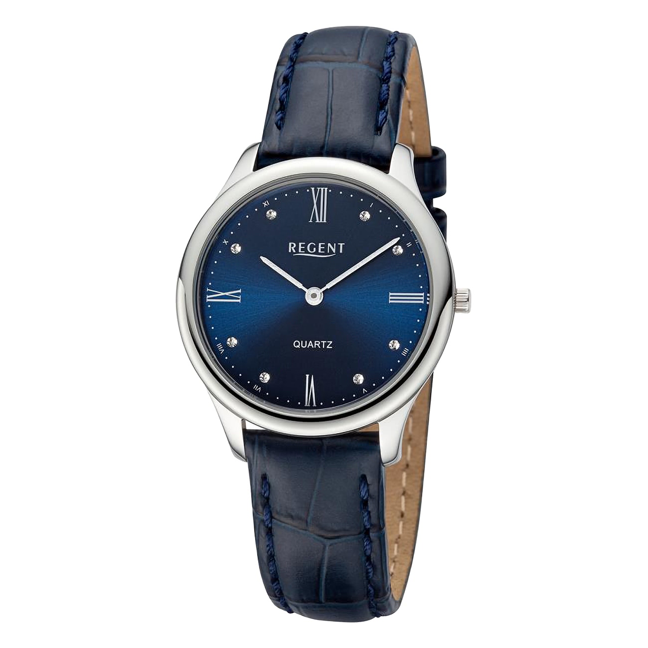Regent Lederarmband Damen Uhr Armbanduhr Analog Leder blau UR2114082