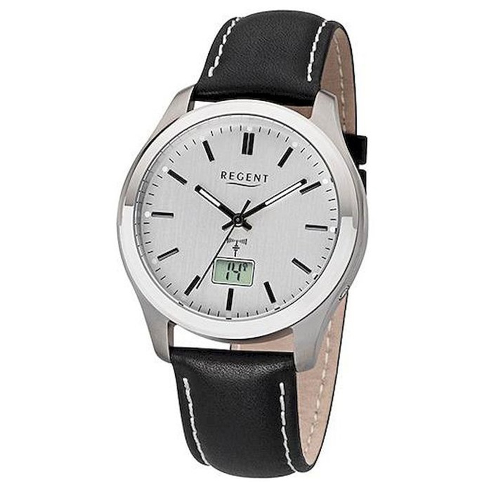 Regent Funkuhr Herren BA-308 Analog-Digital Armbanduhr Leder schwarz URBA308