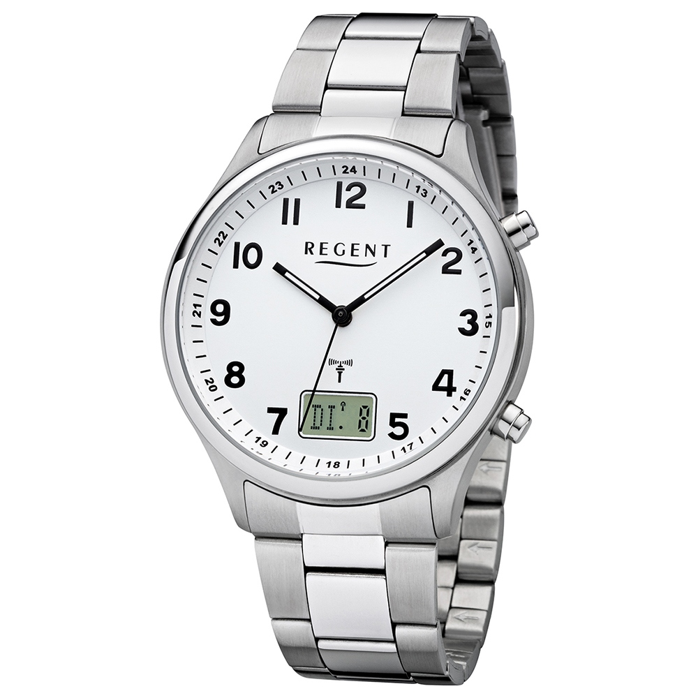 Regent Funkuhr Herren FR-275 Analog-Digital Armbanduhr Metall silber URBA444