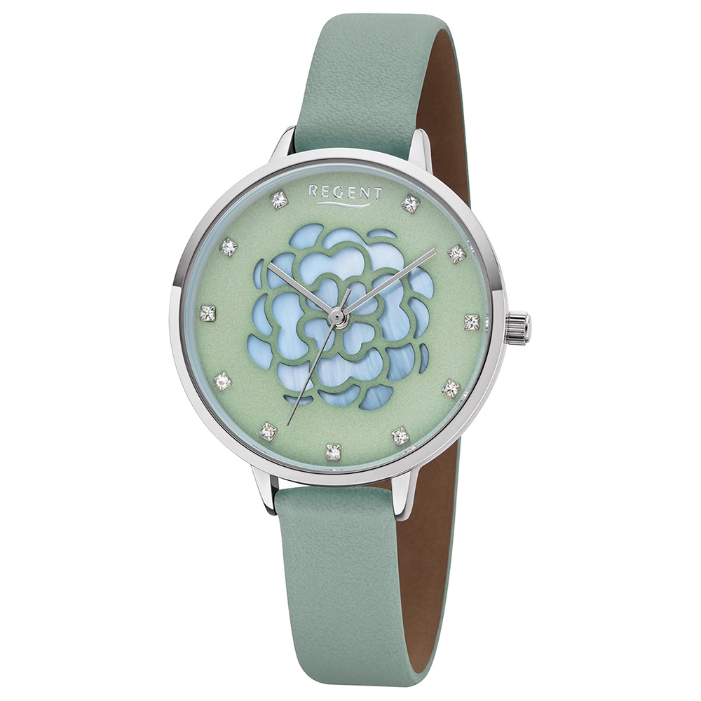 Regent Ladyline Damen Uhr BA-493 Analog Quarz Armband-Uhr Leder grün URBA493