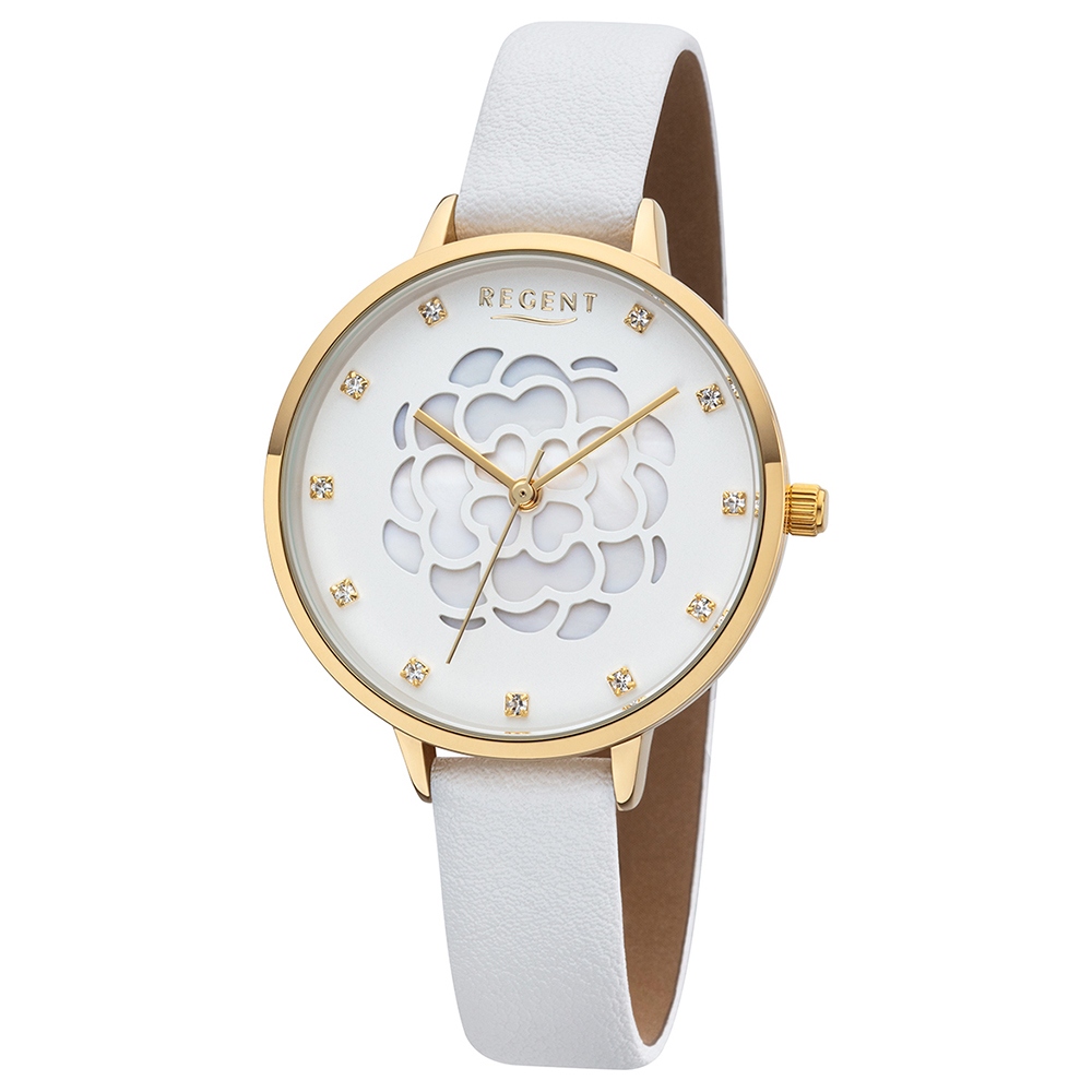 Regent Ladyline Damen Uhr BA-494 Analog Quarz Armband-Uhr Leder weiß URBA494