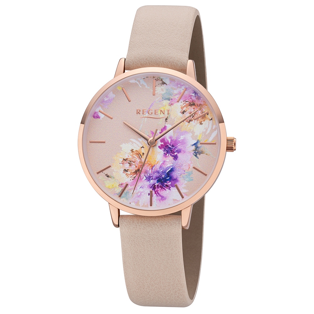 Regent Ladyline Damen Uhr BA-497 Analog Quarz Armband-Uhr Leder beige URBA497
