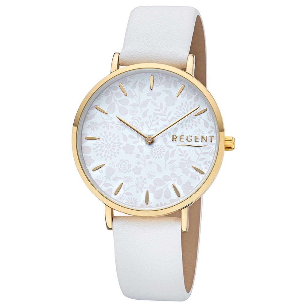 Regent Ladyline Damen Uhr BA-502 Analog Quarz Armband-Uhr Leder weiß URBA502