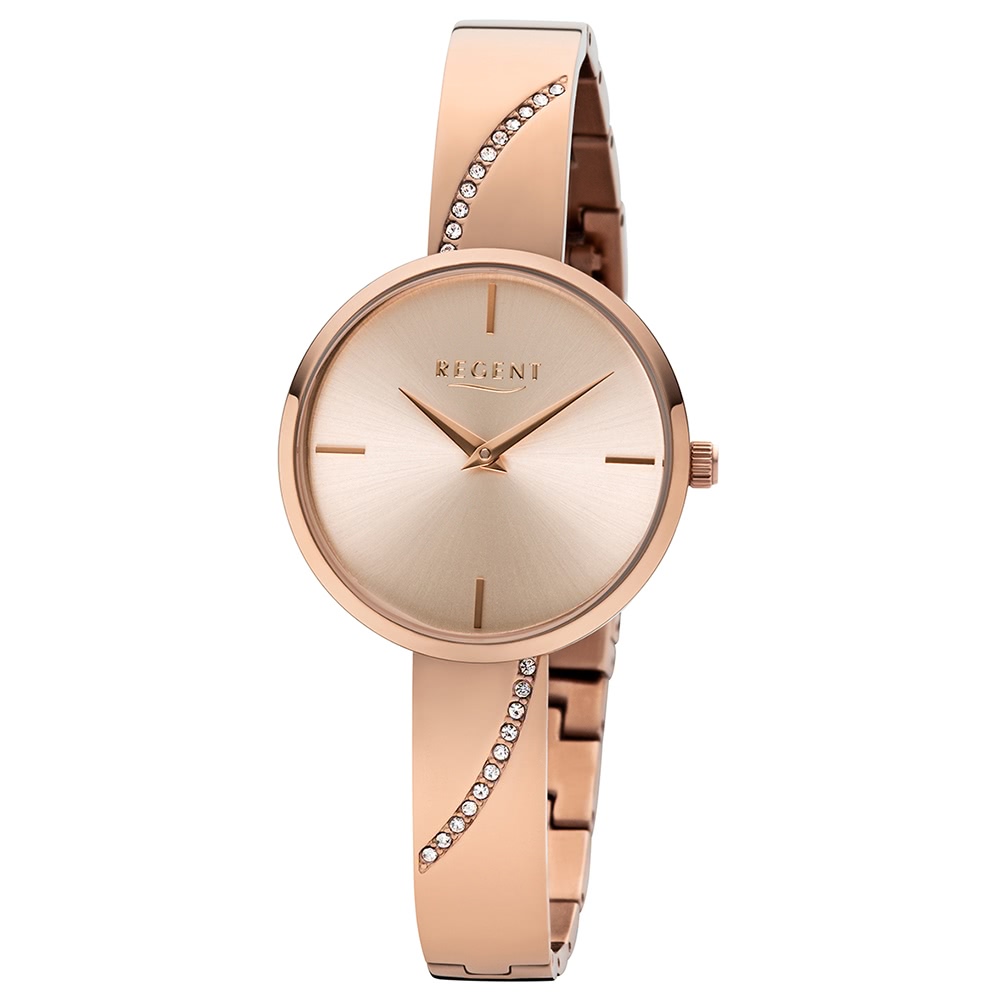 Regent Metallarmband Damen Uhr BA-566 Quarz Armbanduhr Edelstahl rosa URBA566