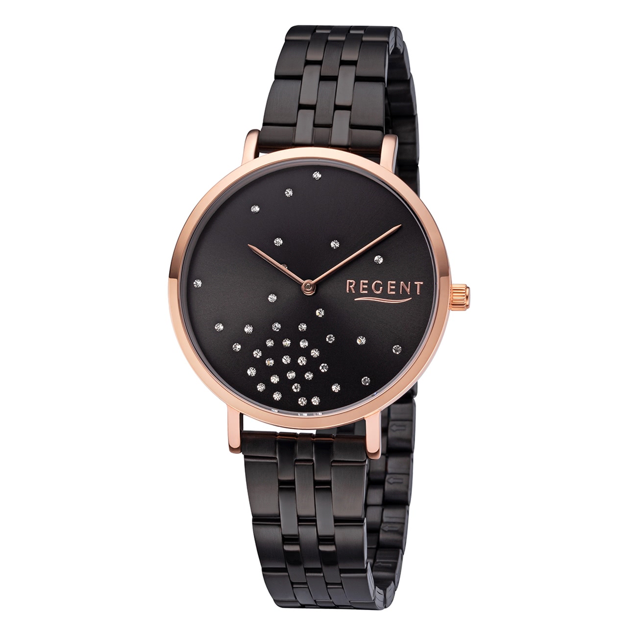 Regent Blütezeit Damen Uhr BA-595 Armbanduhr Glitzersteine Edelstahl schwarz URBA595