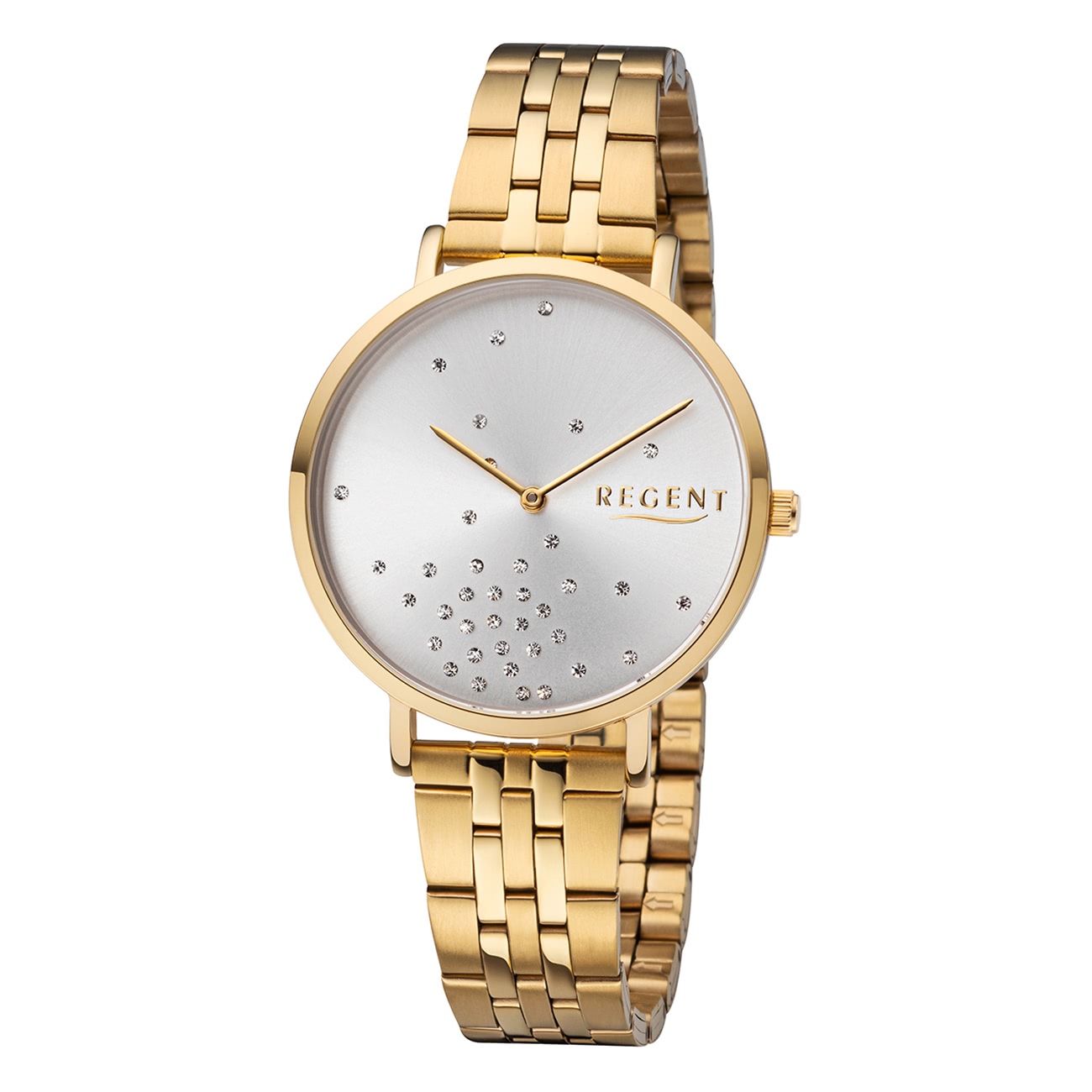 Regent Blütezeit Damen Uhr BA-596 Armbanduhr Glitzersteine Edelstahl gold URBA596