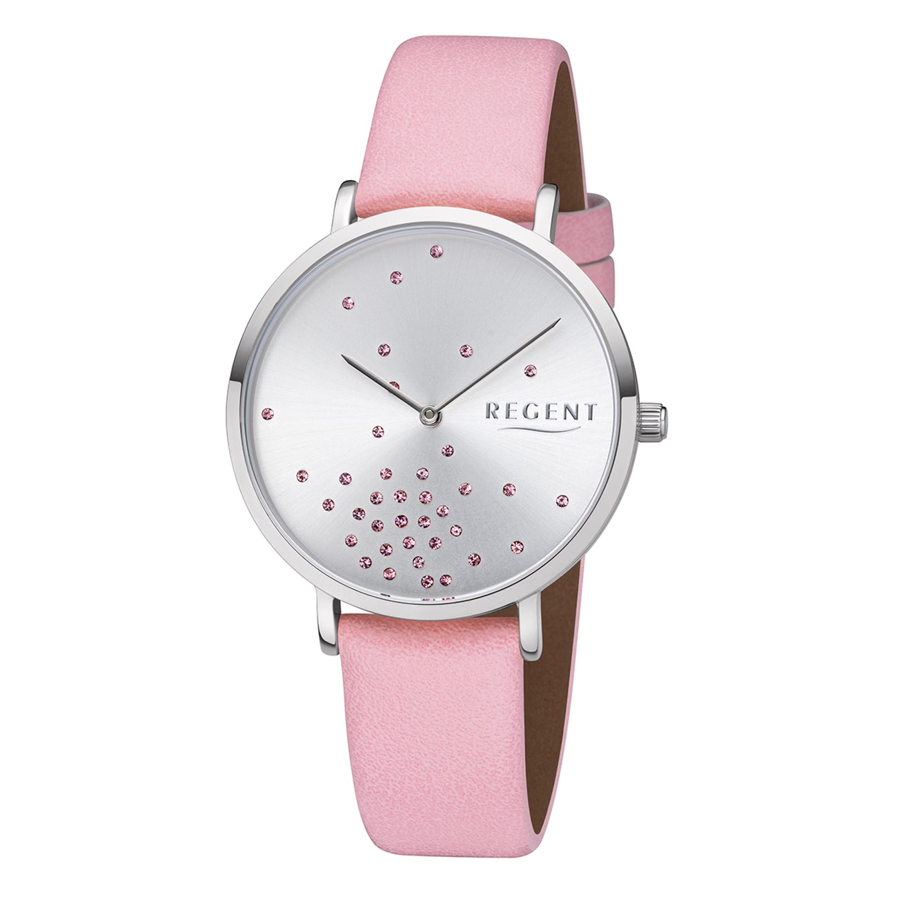 Regent Blütezeit Damen Uhr BA-597 Armbanduhr Glitzersteine Leder rosa URBA597