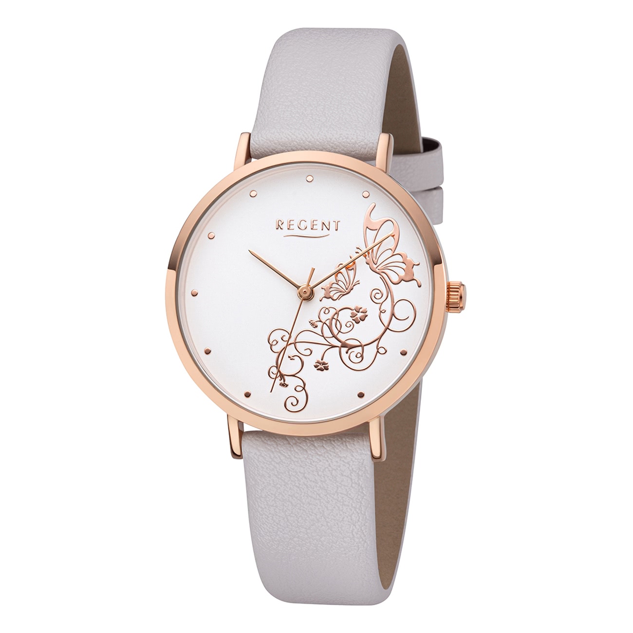 Regent Traumzeit Damen Uhr BA-616 Armbanduhr Schmetterling Leder weiß URBA616