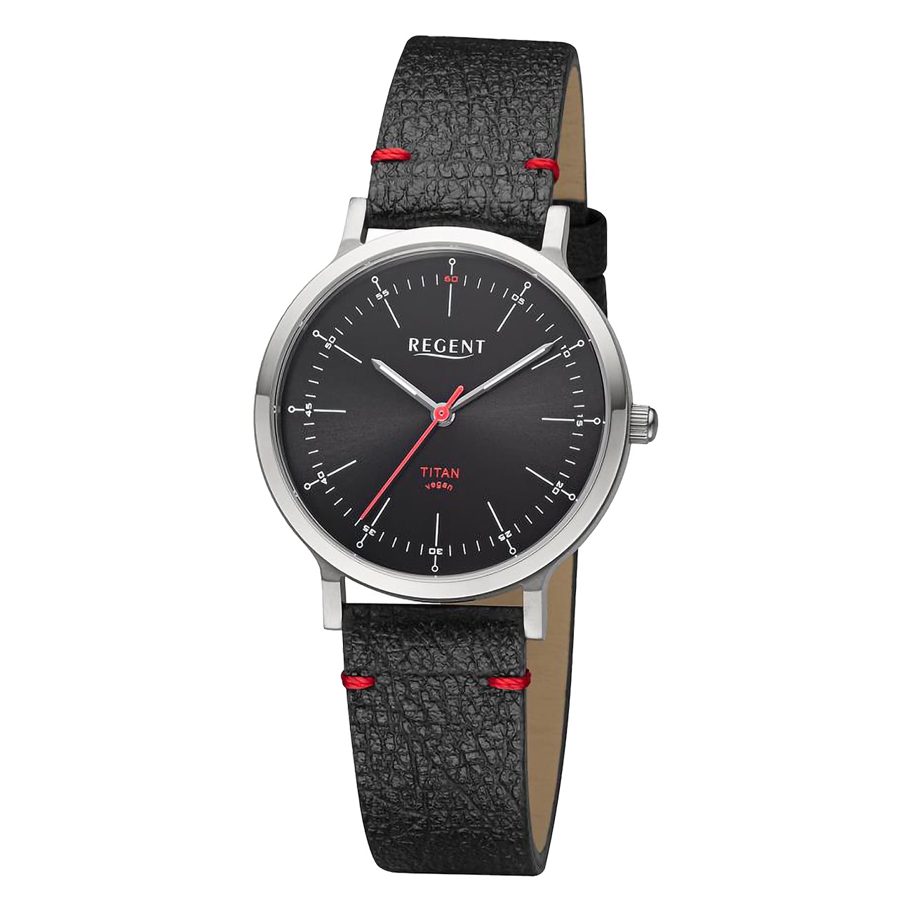 Artikelmerkmale: Regent Lederarmband Damenuhr schwarz, rot