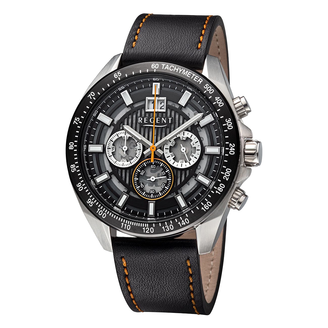 Artikelmerkmale: Regent Lederarmband Herrenuhr schwarz, orange